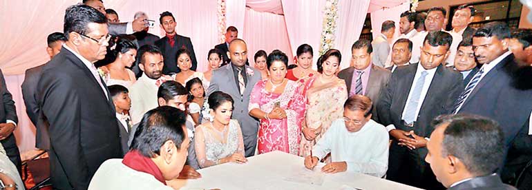 Maithripala Sirisena and his predecessor Mahinda Rajapaksa signed as