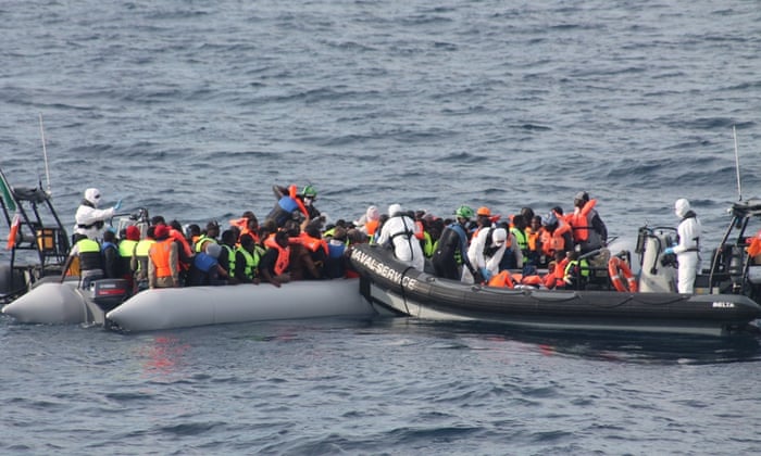 hundreds of migrants from smuggler boats in the Mediterranean on