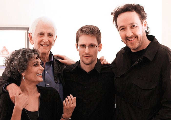 Roy with (from left) Daniel Ellsberg, Edward Snowden and John Cusack. Photograph: Courtesy of John Cusack