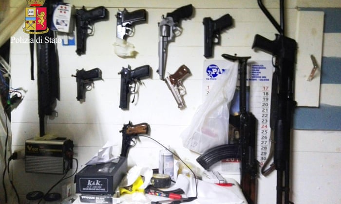 Arms found during the anti-mafia operation in Maropati. Photograph: AFP/Getty Images