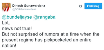 However, after the news spread, MP Gunawardane in his tweet account claimed that the story was a rumour.