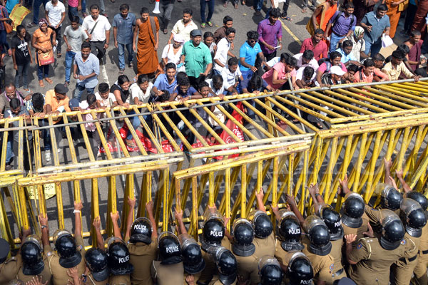 Three protesters including a man and two women were arrested. Pix by Romesh Madushanka Silva