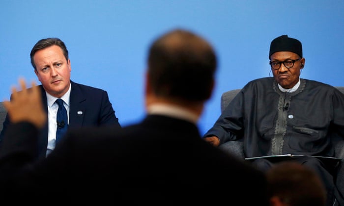 David Cameron and President Muhammadu Buhari at the anti-corruption summit in London. Photograph: Reuters