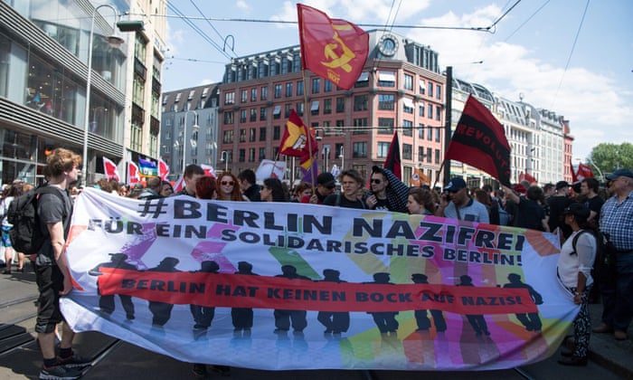 in Berlin carry a banner reading ‘#Berlin Nazi-free, for a solidarity
