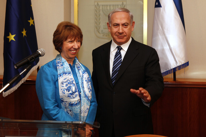 Catherine Ashton, pictured here with Benjamin Netanyahu, supported Israel’s war industry when she was the EU’s foreign policy chief. European External Action Service/Flickr