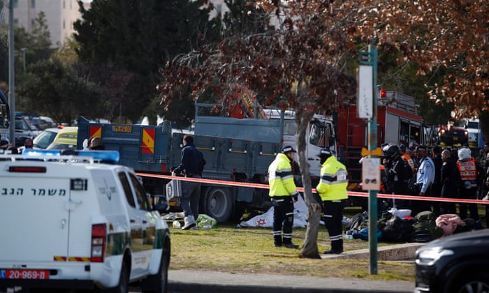 wounded when a Palestinian attacker driving a truck ploughed into them