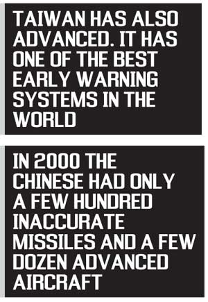 successful invasion. In fact, as Michael Beckley, a fellow of Harvard University, argues in the new issue of the university’s “International Security”, Taiwan could pick off Chinese landing craft as they motored across the Taiwan Strait. Similarly, a sustained bombing campaign would be impossible because Taiwan’s air force and air defences could decimate Chinese bombers.