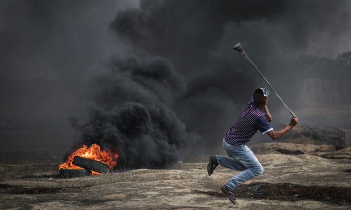 and throw rocks at Israeli forces near the Gaza-Israel border on 11
