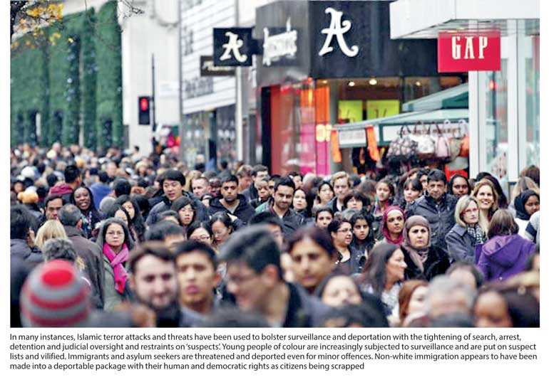 northern parts of Italy.In many instances, Islamic terror attacks and threats have been used to bolster surveillance and deportation with the tightening of search, arrest, detention and judicial oversight and restraints on ‘suspects’. Young people of colour are increasingly subjected to surveillance and are put on suspect lists and vilified. Immigrants and asylum seekers are threatened and deported even for minor offences. Non-white immigration appears to have been made into a deportable package with their human and democratic rights as citizens being scrapped. Some of the migrants, who do not fall within the scope of the dominant ethnicity or the reigning political ideology, and depending on their race, class, religion, immigration status, pre-internments and political beliefs, have no guarantees of their fundamental rights as citizens.
