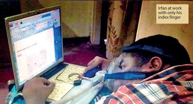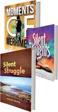 Irfan though weak with all his limbs being non functional did not lose his inborn skills in penmanship. He did not want to idle like many disabled individuals. Time was precious, at a time when many were using social media through Face Book etc and polluting the society, young Irfan had a different idea. He started using a laptop and in the year 2011 he joined the Face Book not with the idea of engaging in anti social activities like most followers of Face Book presently. His talents and skills were not to be used in that manner but in the composition of simple poems and verses, which had a very favourable response and the comments made by a large number of followers encouraged him and brought new life to him. With the number of followers increasing daily, the very appreciative comments infused more life within Irfan. Though frail in health he became strong in his mental alertness which led to the launch of a compilation of verses by him titled “Silent Struggle” in 2012. Not stopping at that he ventured into writing short stories. His “Moments of Merriment” which was a collection of short stories with a word count of 40,000 took nearly a year for him to complete.