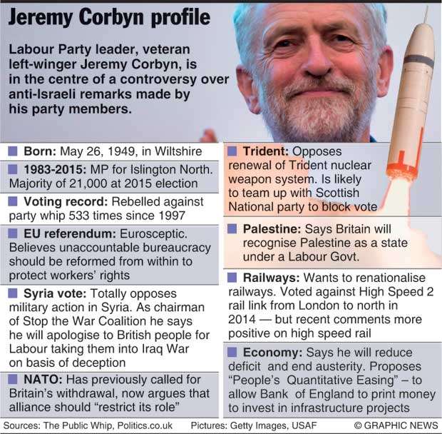 Corbyn’s problems began in April 2016 when Labour MP Naz Shah criticised Israel on social media posts and endorsed a suggestion that Israel be sent to the US. This was followed by former London mayor Ken Livingstone’s defence of Shah during a radio show. He added to the controversy by saying Hitler supported Zionism. He later resigned from the Labour Party, following his suspension.