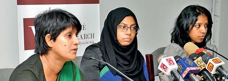 From left: Verite Research’s Research Director Subhashini Abeysinghe, Analyst Hasna Munas and Economic Research Team Leader Vidya Nathaniel - Pic by Ruwan Walpola