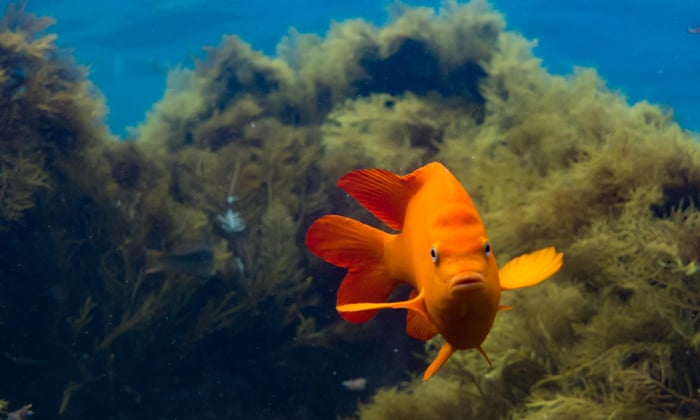A garibaldi fish near Santa Catalina, California. Researchers swabbed 17 species of fish caught off the southern California coast. Photograph: Michael Greenfelder/Alamy Stock Photo