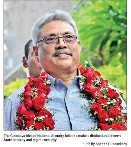 The Gotabaya Idea of National Security failed to make a distinction between State security and regime security. Gotabaya Rajapaksa conflated security of a clan centric regime with the legitimate security of the Nation State. That must not happen again.