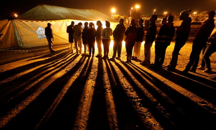Voters queue to cast their ballots before polls closed outside a polling station in Alexandra township in Johannesburg on Wednesday. Photograph: Mike Hutchings/Reuters