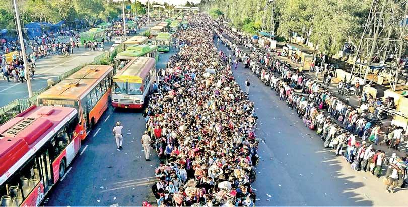 Migrant workers at a city bus stand- The poverty stricken rural migrant workers were essential to build the cities’ roads, high rise buildings and posh apartments, but once these were built, they were expected to disappear into thin air or languish in unhygienic shanties