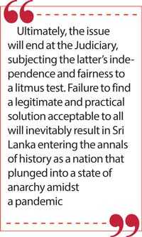 Ultimately, the issue will end at the Judiciary, subjecting the latter’s independence and fairness to a litmus test. Failure to find a legitimate and practical solution acceptable to all will inevitably result in Sri Lanka entering the annals of history as a nation that plunged into a state of anarchy amidst a pandemic.