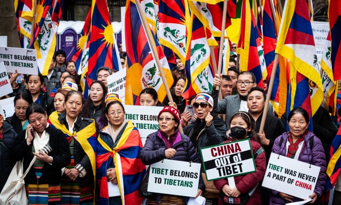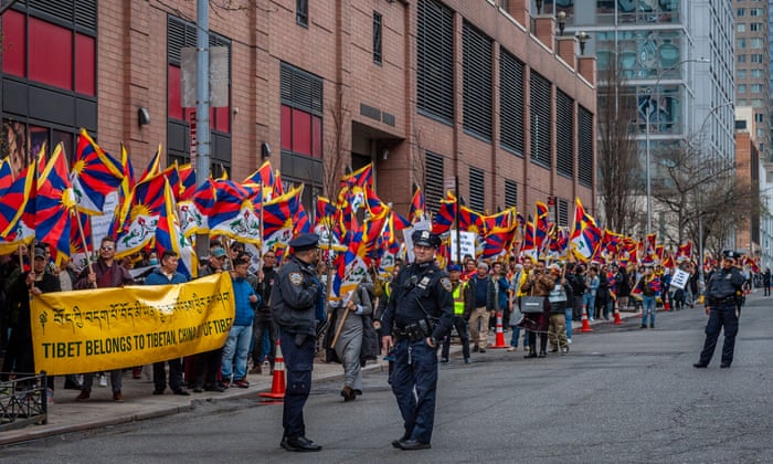 Tibetans commemorate the 1959 Tibetan Uprising against the invasion of Communist China with a rally in Dag Hammarskjöld Plaza in New York City in March. Photograph: Pacific Press/LightRocket/Getty Images