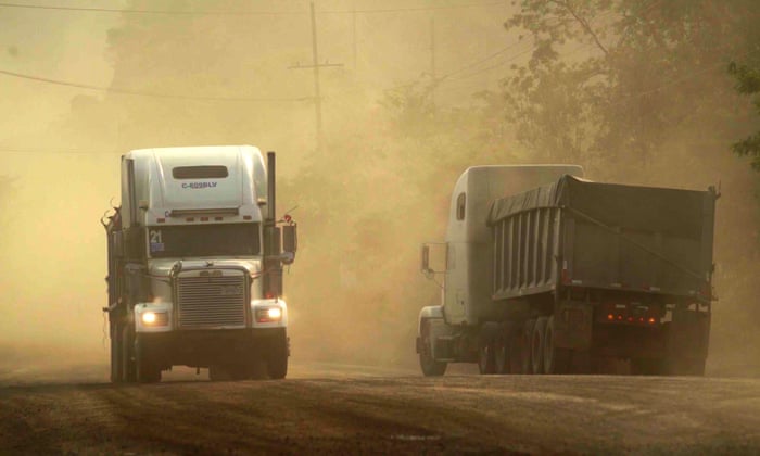 Lorries exiting the Fenix nickel mine in Guatemala. Photograph: Guardian